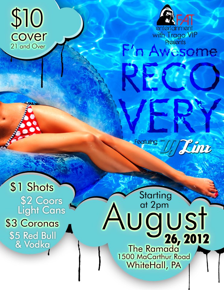 The Valley’s ONLY Vegas Style Recovery Pool Party just got even more F’n Awesome. Trago VIP and F.A.T. Entertainment present to you The F’nAwesome Recovery Party with DJ Linx on SUNDAY AUGUST 26th at 2 PM and goes ALL NIGHT. So either come by and keep the liquor flowing or catch some sun on the side of the pool. F.A.T. Entertainment’s own DJ Linx will be spinning from 2 PM – 6 PM. $10 Cover (gets you access to Ramada’s Pool & Bar)