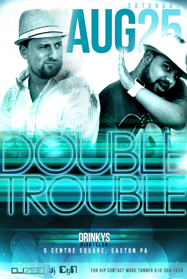 August 25th F.A.T. is teaming up with the two titans of the Valley, D.j. Zee (@DJ_Zee_) & D.j. Cyn (@DJCyN), for Audiodynamicz presents DOUBLE TROUBLE. After killing dance floors from our area to Atlantic City to the illustrious LAS VEGAS these two are teaming up for a colossal event the likes of which the Valley has never seen. There is even a special something being built justfor this event. This is also to help celebrate F.A.T. Entertainment‘s 1st anniversary. All of which adds up to one thing. Another epic event brought to you by Drinkys, AUDIO DYNAMIKZ and F.A.T. Entertainment.